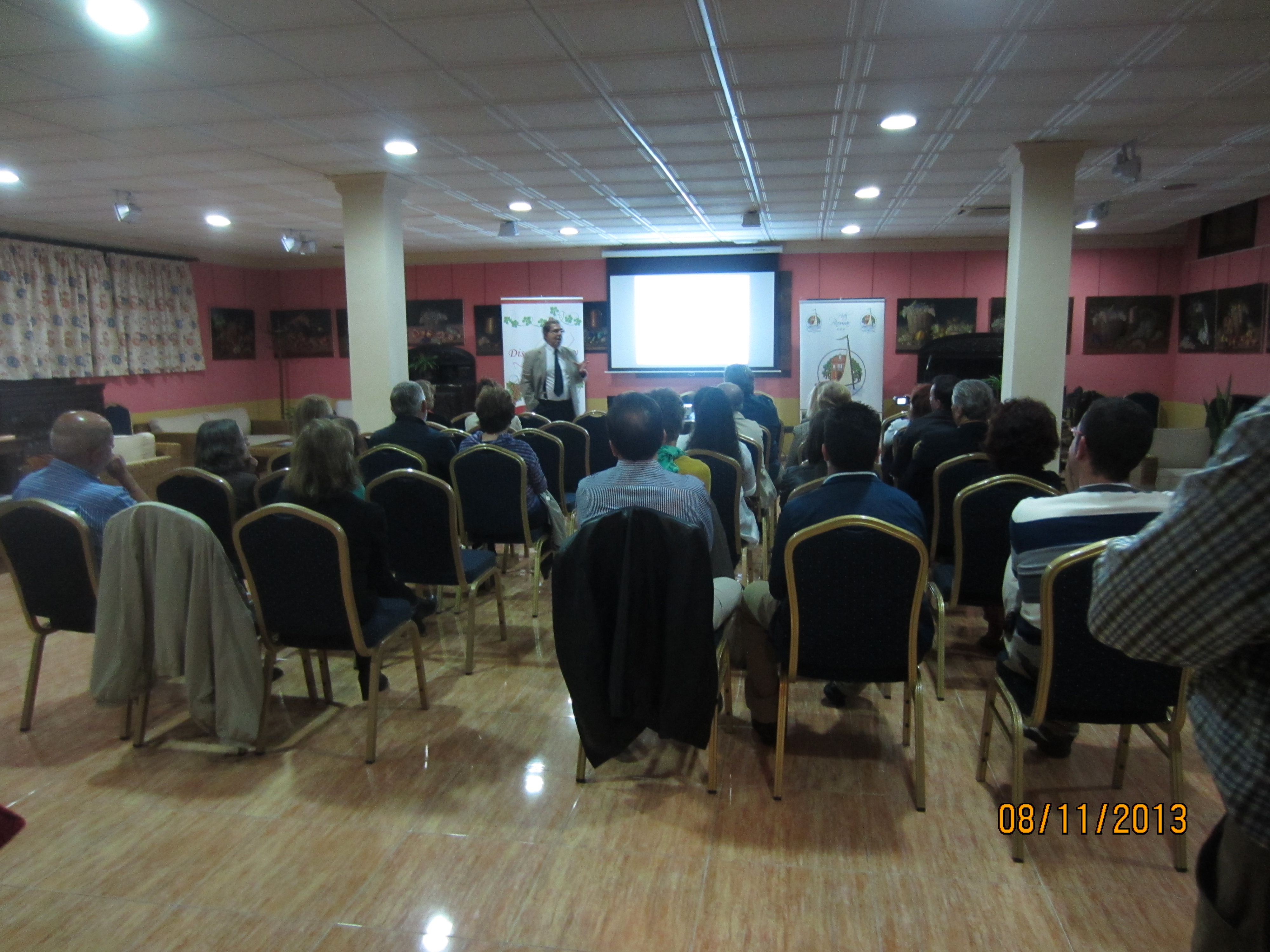 La conferencia trató sobre el origen del vino en el mundo antiguo, realizando una visión general a partir de las referencias encontradas en Mari, Ugarit y el Egipto de los faraones, mostrando el avance técnico que implicaba y las funciones sociales y comerciales que desempeñaba.