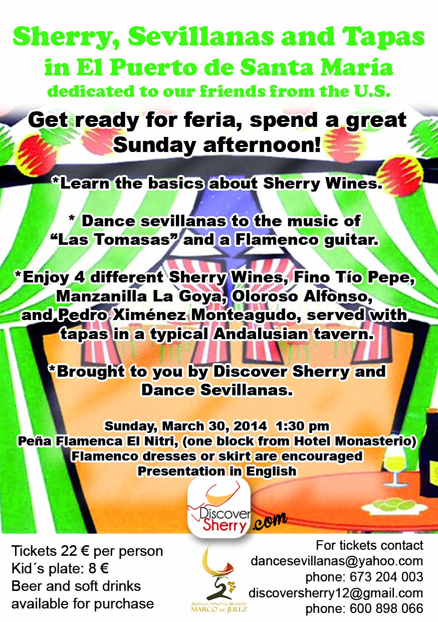 Trying on the flamenco dress for Sunday´s Sherry, Sevillanas & Tapas event. The zipper closed, thank God, but I can´t breathe very well!! Make sure that you get your tickets before Thursday! See you there!