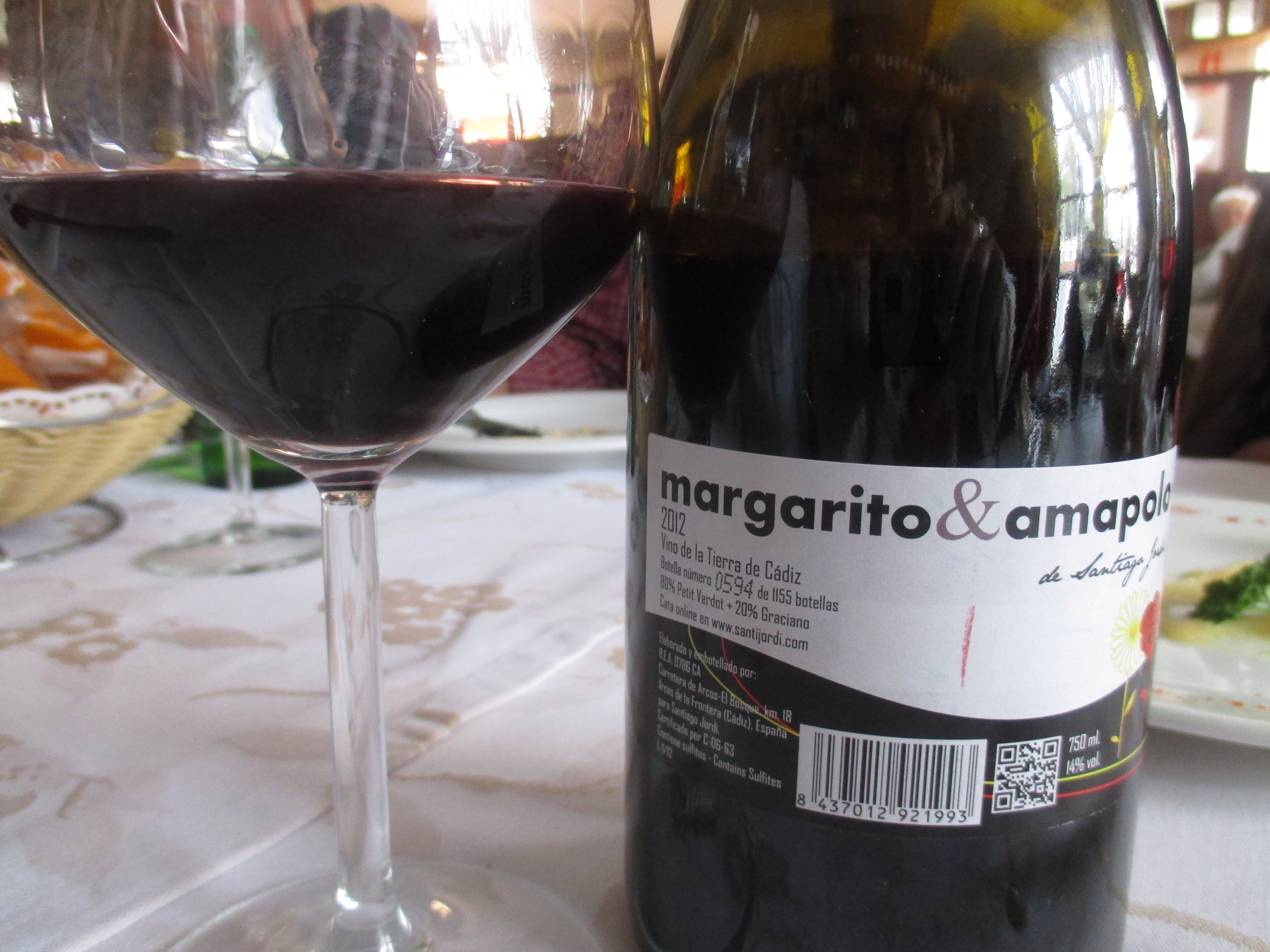 El Segundo vino que tomamos fue también un tinto esta vez de la Tierra de Cádiz, “Margarito y Amapolo” 2012. Este vino lleva 80% de Petit Verdot y un 20% de Graciano, envejece 6 meses en roble francés y roble americano.