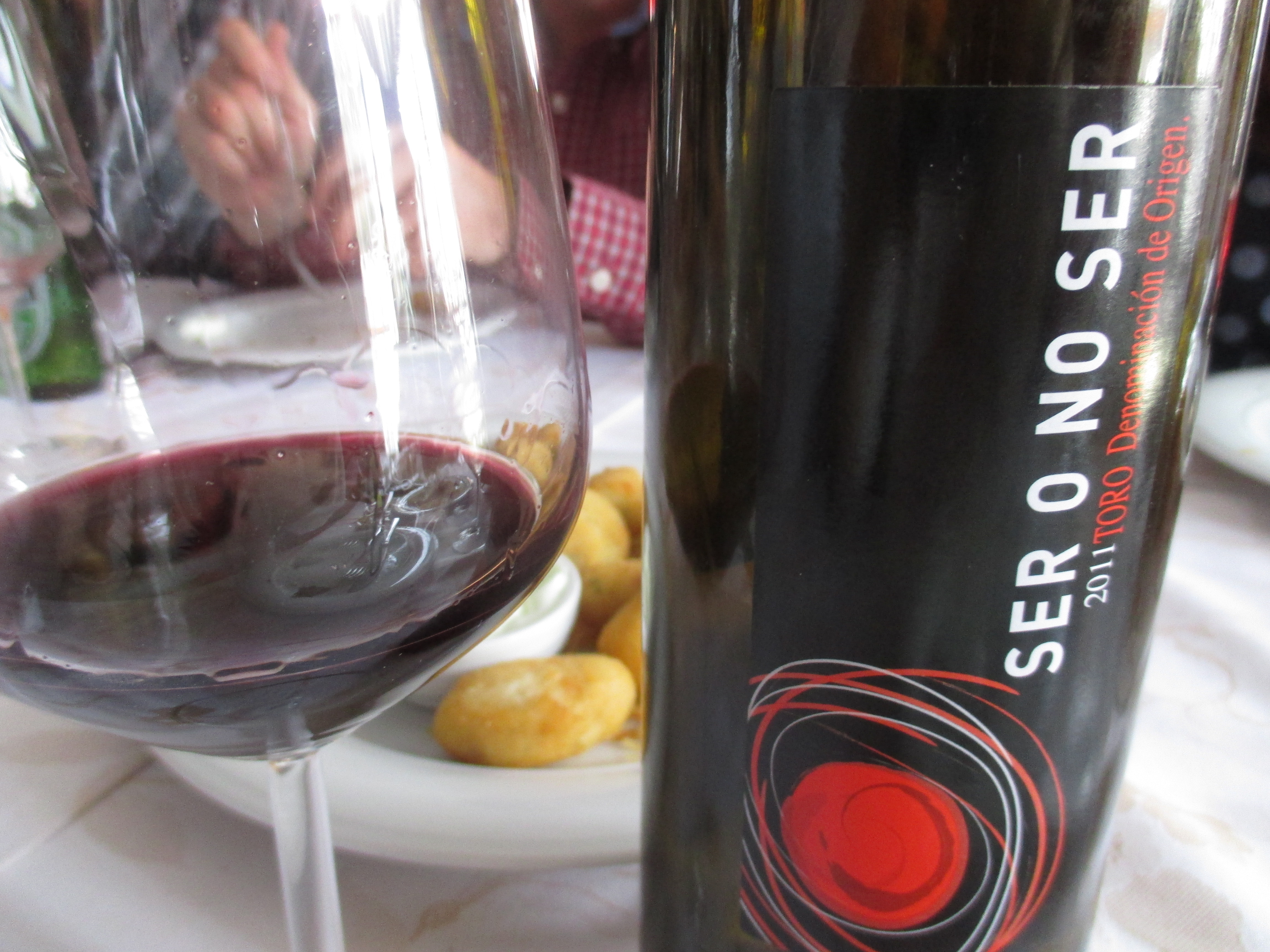 Con el menú que nos sirvieron en el Restaurante Los Rescoldos probamos dos vinos tintos de nuestro profe Santiago Jordi, Enólogo y actual Presidente de la Federación Española de Asociaciones de Enólogos. “Ser o No Ser” 2011 de la D.O. Toro fue el primero que probamos. La variedad de uva es 100% Tinta de Toro y tiene 12 meses en barrica de roble francés. Nos gustó mucho a todos.