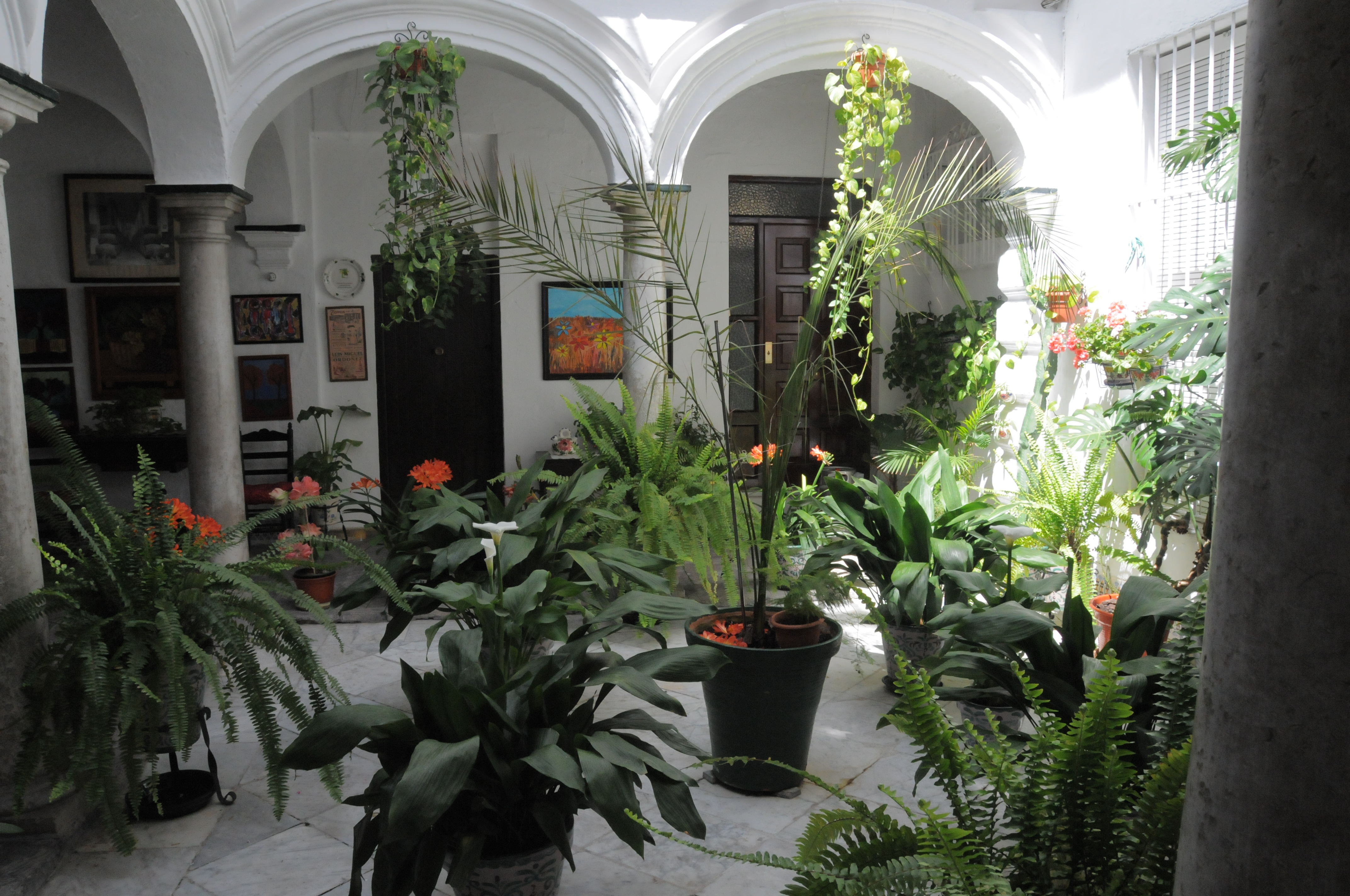 Many of these patios are found behind unsuspecting doorways and are part of palace-like homes, or even monasteries, that were built long ago by what are referred to as “Cargadores de Indias.” It is a curious name, but it is one that has strong ties to America and the rest of the “New World.” Since Columbus was convinced that he had landed in the Orient, the lands that he discovered were always referred to as the “Indies.” The “cargadores” were those persons who created transport and supply companies to serve the industries that grew out of the colonization of the New World. Throughout centuries, they provided the ships and whatever was needed to sail to the Americas and back. They also became apt traders of goods between both worlds, from which they acquired small fortunes. It is no wonder that they were able to build some amazing structures for their time. These homes can be found throughout the area in which we live (especially in El Puerto, Cádiz, and Sanlúcar) since the usual ports of departure for the New World were in Southern Andalucía. Many of those buildings featured tiled patios which were protected from the summer´s heat and were often the perfect location for enjoying plants, gardens, fountains, parties, dinners, or even solitude. They provided a nice refuge as well as a common area for families to gather.