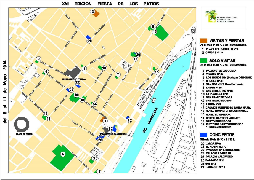 The map and schedule of activities, can be found at the Association´s website: www.patiosportuenses.com.es There are English and Spanish versions of both in order to make it easier for everyone to discover these gems. Most of the patios will also be marked with a colorful apron hanging above the doorway.