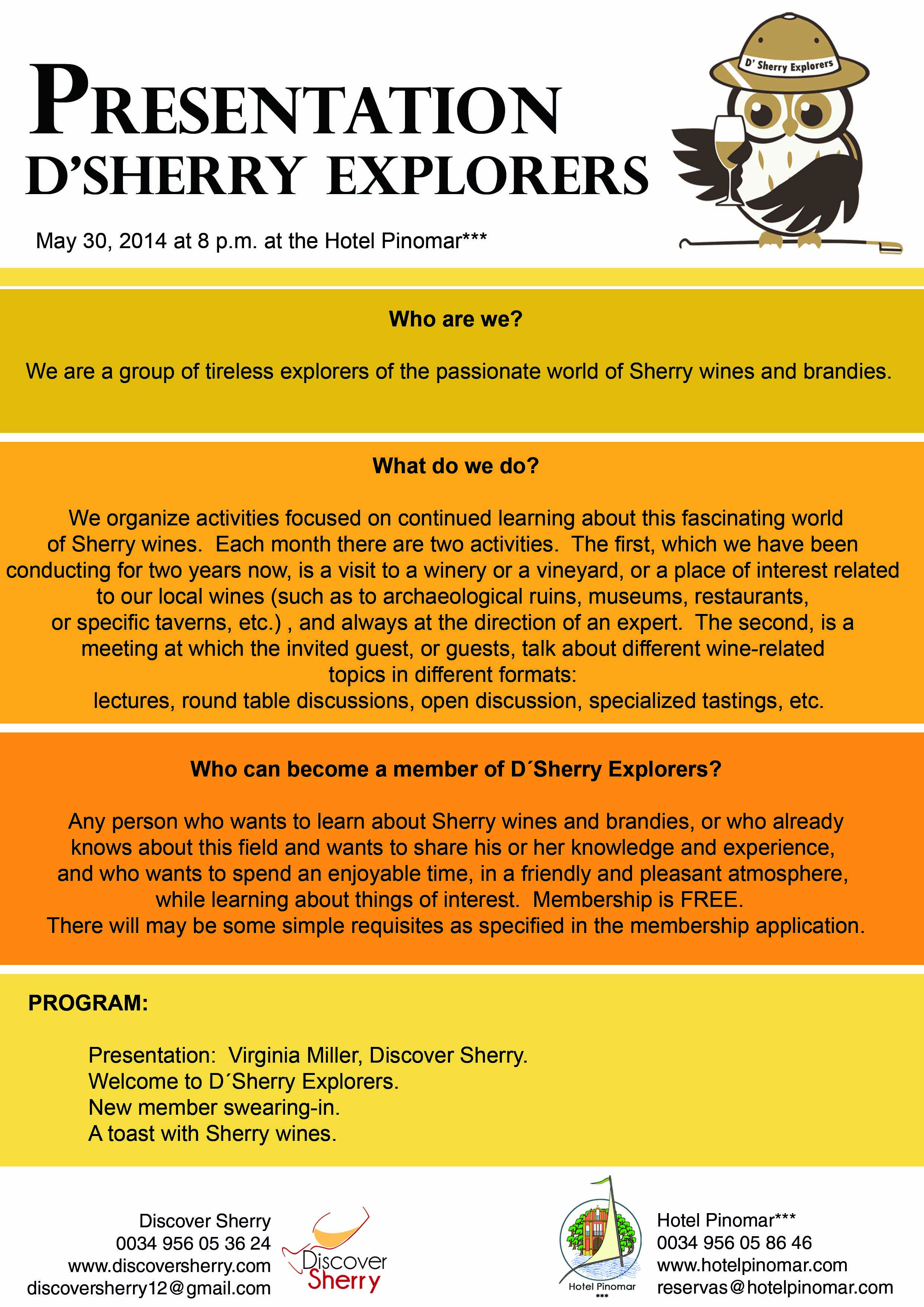 Si te gustaría ser un D´ Sherry Explorer, escríbenos a discoversherry12@gmail.com y te enviaremos más información, una solicitud y el logo de nuestra mascota para que puedas hacerte una camiseta chula.