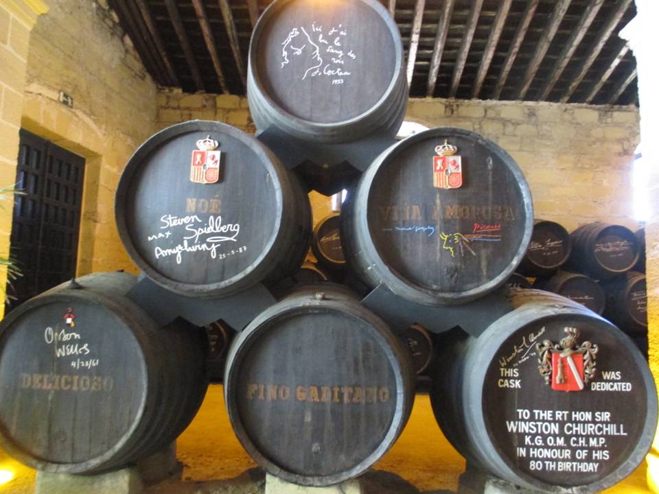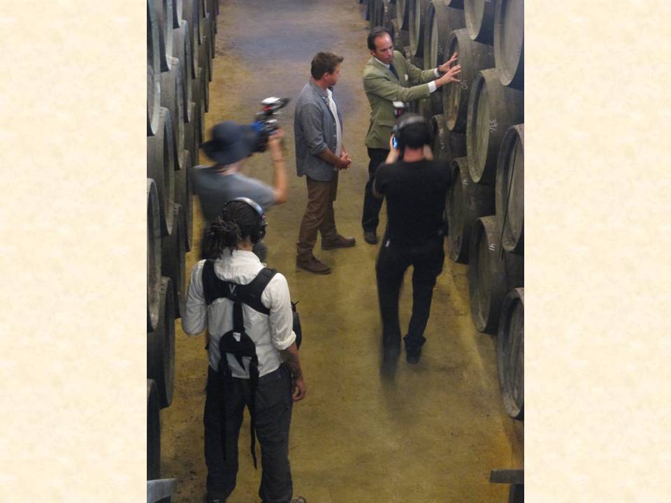 Llegó el momento de grabar en la bodega del Tío Pepe donde están las soleras de este vino conocido en el mundo mundial.