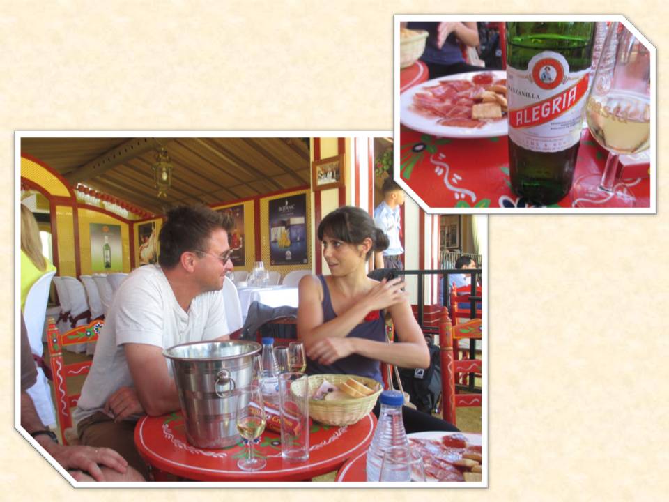 So, that´s what I did.  I spoke about the Feria tradition, its customs, what sevillanas were, I taught to dance them in 5 minutes, we toasted, we drank fino sherry, I explained about the great variety of Sherry wines and he said that he wanted to try them all.  In the end, we had to repeat a few things because of the loud music from a nearby caseta, but I think everything came out well.