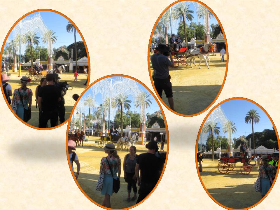 Y ahora me tocaba a mí.  Casi me da un patatús, no se que tuviese que interpretar de español a inglés cuando hiciese falta, no, tenía que rodar y contarle a Jack lo que era la feria, hablarle del vino, de las sevillanas, las costumbres, de Andalucía, del flamenco……..casi me da un ataque.  No te preocupes, me decía la directora, sé tu misma y olvídate de que te estamos filmando y grabando.