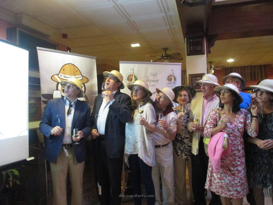El equipo de Discover Sherry hicimos el primer juramento con salacots u otros sombreros de exploradores, una copa de jerez en una mano y una venencia en otra, brindamos y ya somos Sherry Explorers.