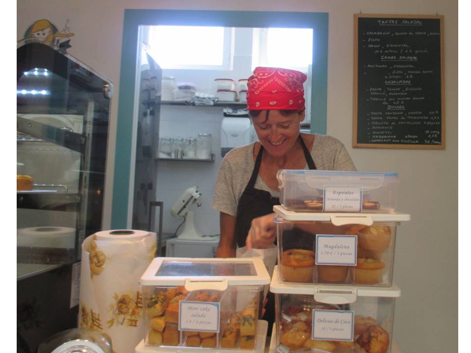 Toda la repostería es casera. Tartas. Galletas. Dulces y salados. También hay ensaladas de cus-cus y de pasta entre otras.