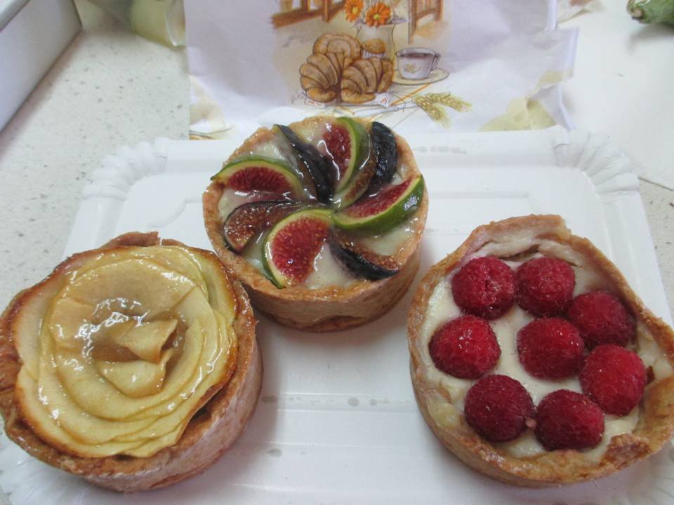 We tried these three fruit sweet tarts and they were delicious. There are also non-sweet tarts: pumpkin and goat cheese, vegetable, bacon, and Swiss cheese. There is also one that is specially made for each day.