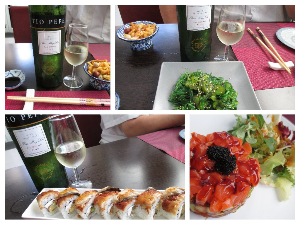 La primera que fuimos no tenían vinos del Marco ni de la Tierra y les animamos a tener algunos pues maridan perfectamente con la cocina japonesa. La siguiente vez que les visitamos ya tenían ni más ni menos que Tío Pepe.