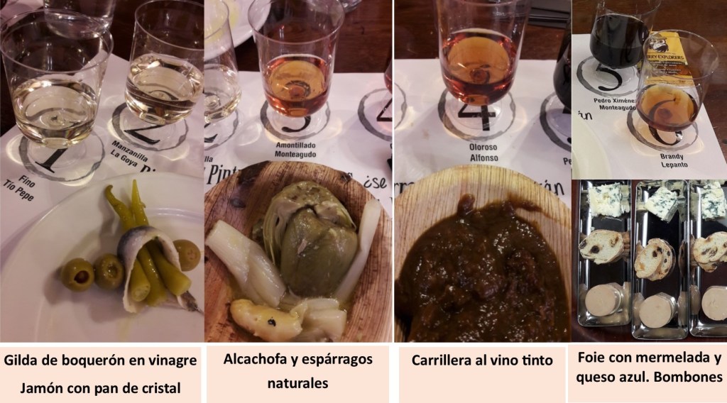os a probar cada uno de ellos con todos los vinos. Se sirvieron también unas anchoas riquísimas que estaban espectaculares con la manzanilla La Goya y con el fino Tío Pepe.
