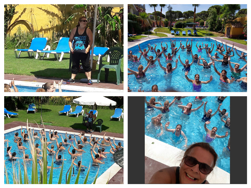 Ingrid Miller, instructora de Zumba y Aqua-Zumba y Sherry Explorer, ofreció una clase-demostración de Aquazumba en nuestro campamento base, el Hotel Pinomar. Un numeroso grupo asistió a esta clase y entre los asistentes, un grupo de Sherry Explorers.