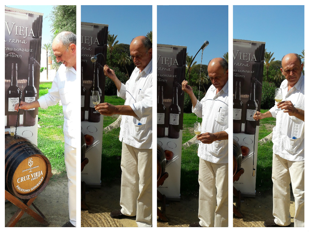 Winery Owner Jaime González García-Mier, extracted, with a traditional venencia, his amazing and cold Fino Cruz Vieja Fino en Rama. Once again, as we do every year, we toasted to the most important promoter of Sherry wine in England, during the end of the 16th century. Afterwards, we shared some tapas at one of our favorite restaurants, Val de Pepe, which is located at Calle Paraíso 3, in Jerez.