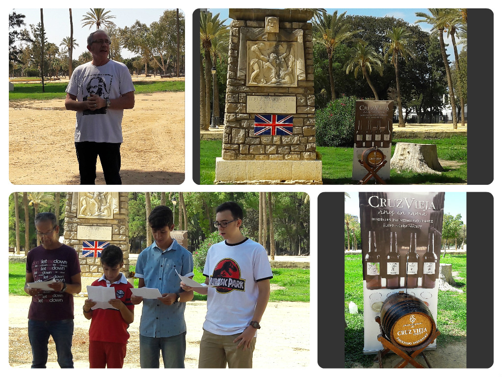 Pepe Jiménez greeted us and provided an inspirational synopsis of the history relating to this annual event. The traditional floral offering was made, as well as the now-traditional recital of Shakespearean poetry, both in Spanish and in English. Afterwards, a fitting toast was made with the Sherry of Honor, Cruz Vieja Fino en Rama.