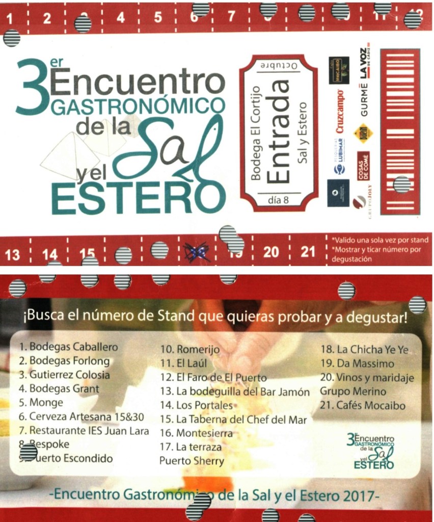 Un grupo de Sherry Explorers asistimos a las Jornadas Gastronómicas de la Sal y El Estero y disfrutamos a tope. Los restaurantes más representativos de El Puerto de Santa María estaban presentes así como el IES Juan Lara. Nos sorprendió el altísimo nivel de las tapas que compartieron, estaban exquisitas. Las bodegas muy bien representadas y hasta pudimos probar algunas de las Sherry Beer del Grupo Merino. No faltaron postres muy originales y café. Enhorabuena al organizador, Nicolás Terry, un año más las jornadas han sido un exitazo.