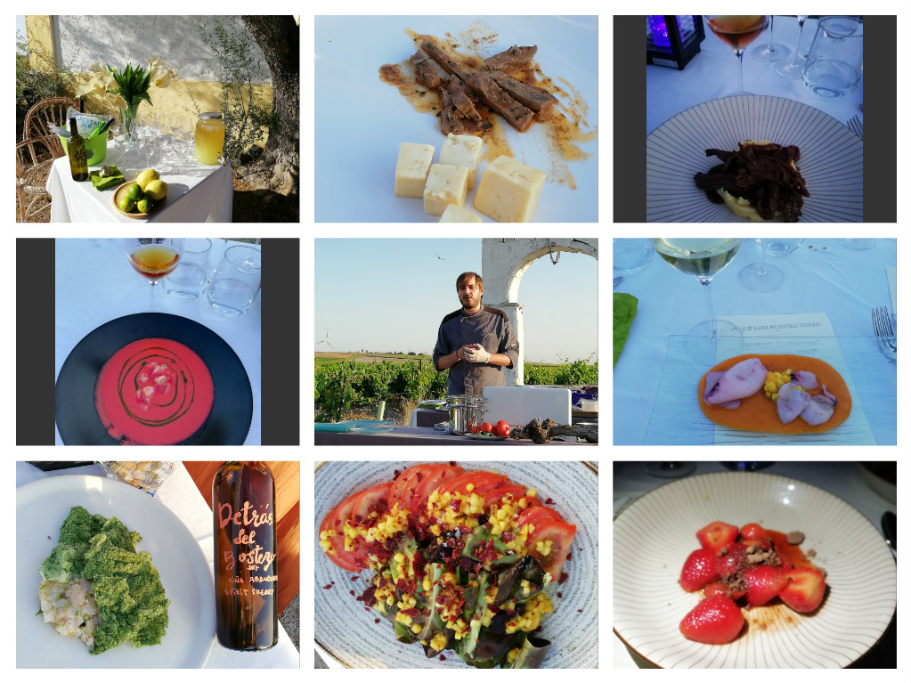 Justo al lado de el pozo en plena viña, Javiér Muñoz, el Chef de La Carboná, estaba listo para empezar su showcooking. Cecilia realizó una cata técnica sobre Vinos peculiares del Marco que acompañaron a cada plato.