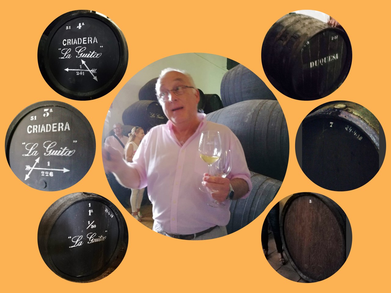 That afternoon, we visited the La Guita winery were oenologist Eduardo Ojeda provided us with a spectacular sample tasting from the 6th criadera of the La Guita manzanilla wine to an incredible Amontillado (which is not sold to the public) by sampling the differences in the contents of the casks found on the 4th, 3rd, and 1st criadera cask-rows. Similarly, we compared the la Duquesa manzanilla, sampling the difference between the number 7 and the number 3 casks.