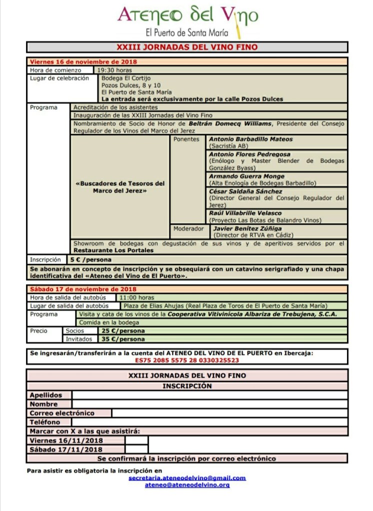 XXIII Jornadas del Vino Fino, El Puerto de Santa María (Spanish)