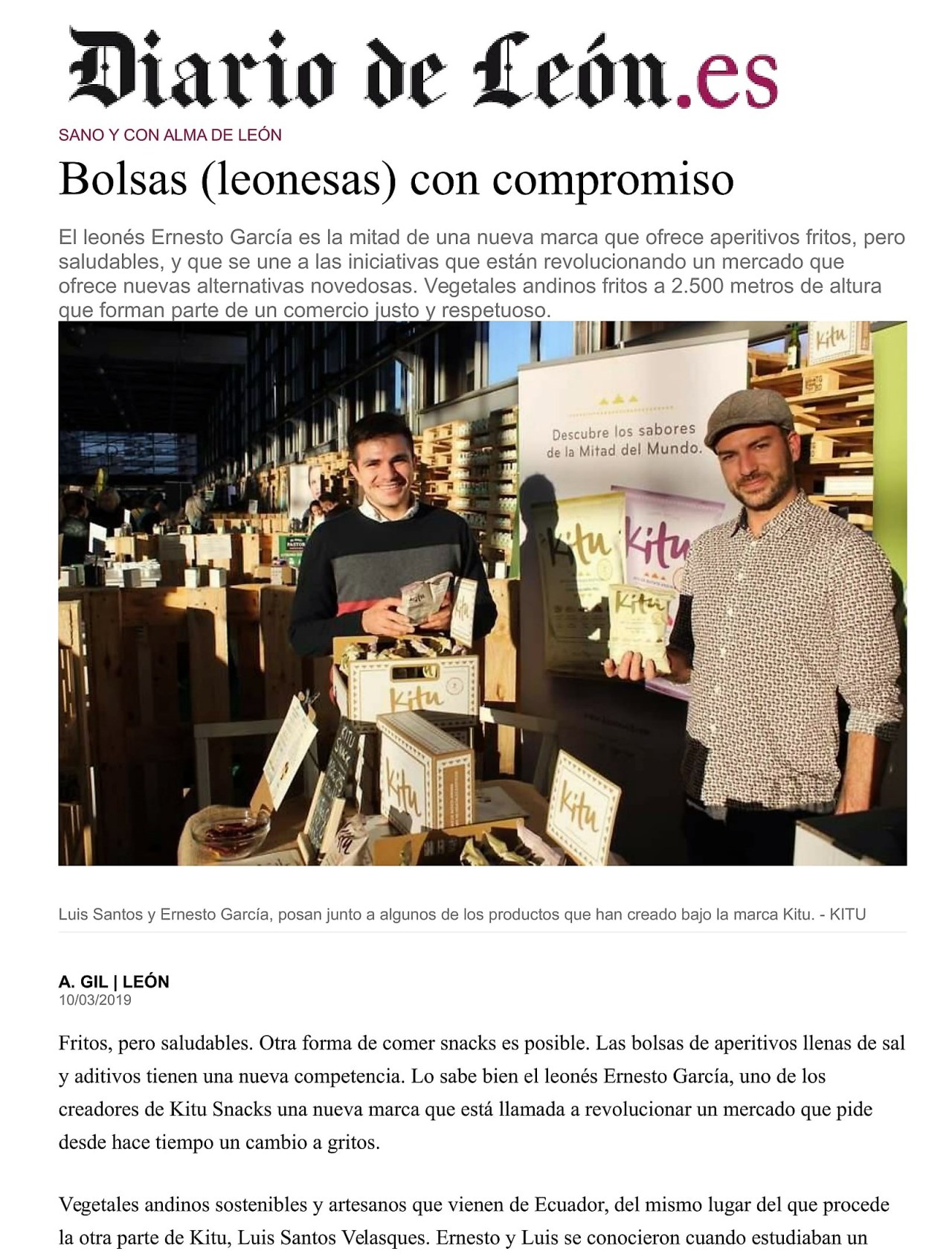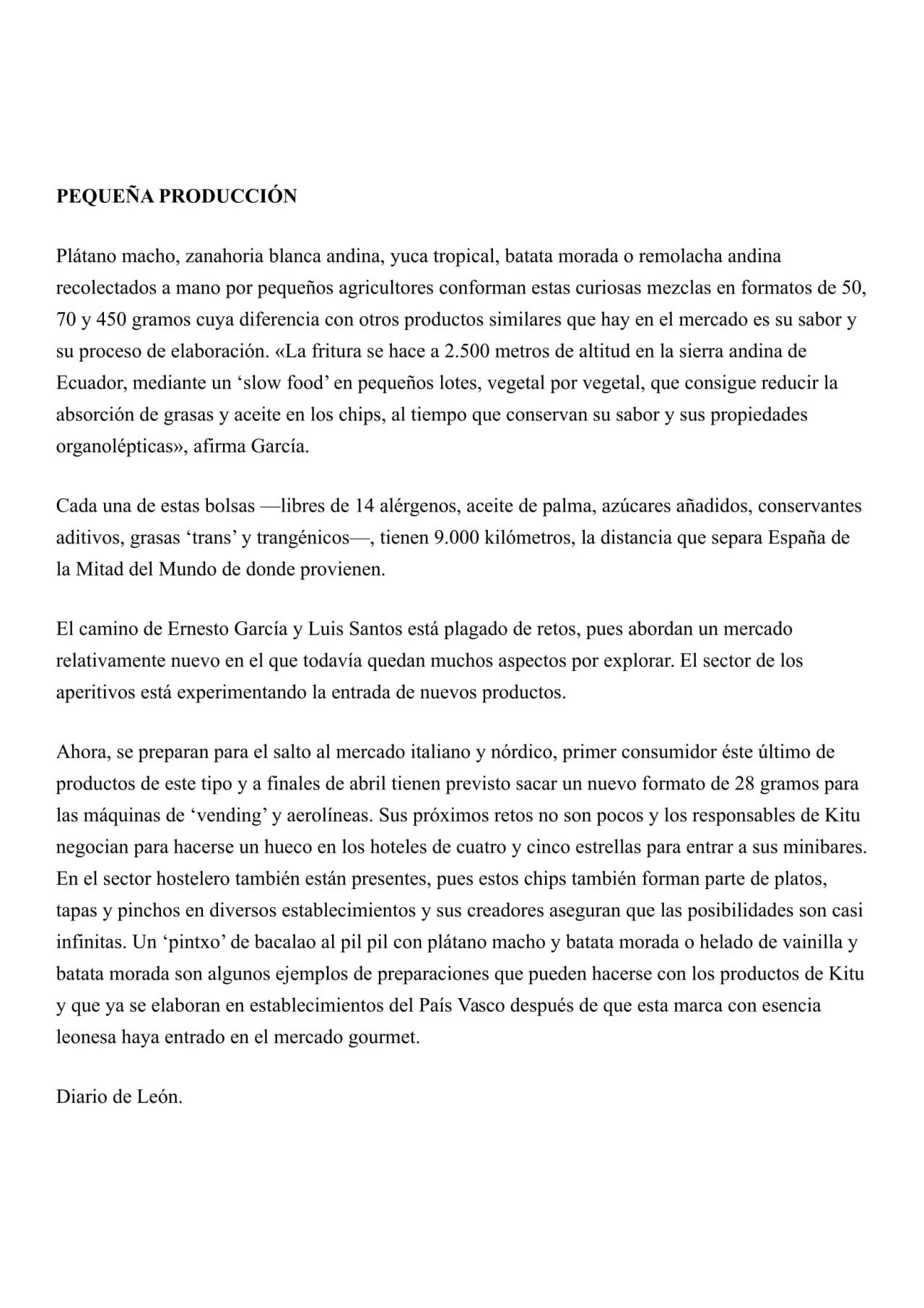 Os recomendamos Kitu, unos aperitivos sanos, ricos y crujientes que llegan desde la Sierra Andina de Ecuador donde el plátano macho, la zanahoria blanca andina, la yuca trópical, la batata morada o remolacha andina son recolectados y preparados como un “slow food” . Ernesto García, hijo de nuestra Sherry Explorer en León, Charo Marqués, es uno de los creadores. Los hemos tomado un una copita de Fino y …estupendos! Os dejamos este artículo del Diario de León sobre este aperitivo tan original. (https://kitusnack.com/) http://www.diariodeleon.es