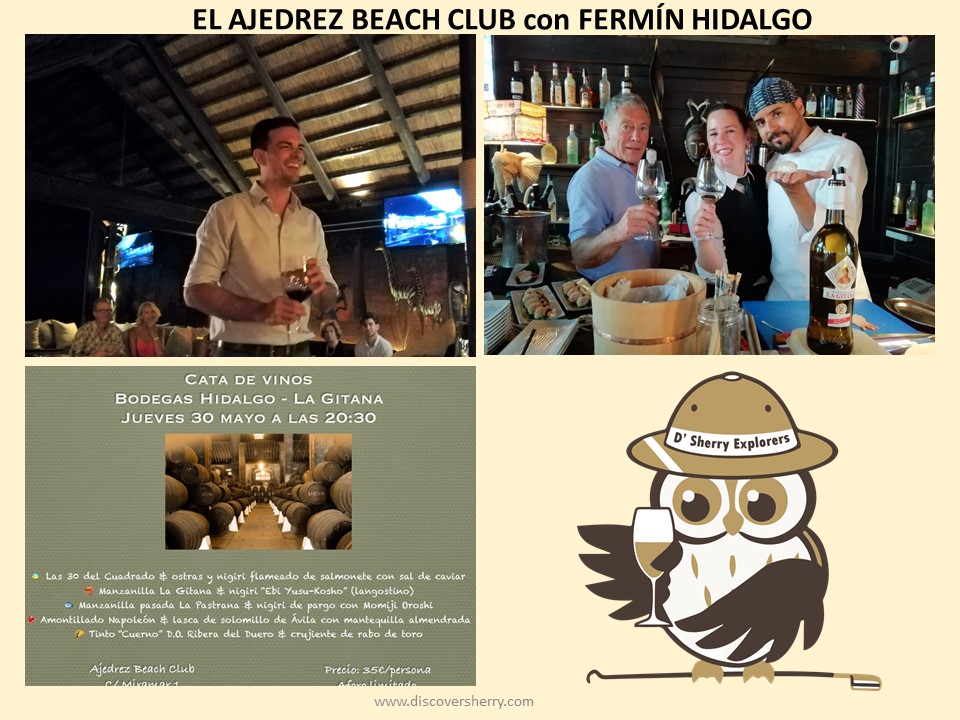 We continued the tasting while Fermín Hidalgo, eighth generation of this Sanlúcar winery, introduced the different sherry wines that he had selected for this occasion. We tried La Gitana manzanilla along with an “Ebi Yuzu Koshou” nigiri (made with prawns). We were a very diverse group that night. With English, Americans, French, Basques, and other Spaniards from the province of Cádiz, and there were five from León!!