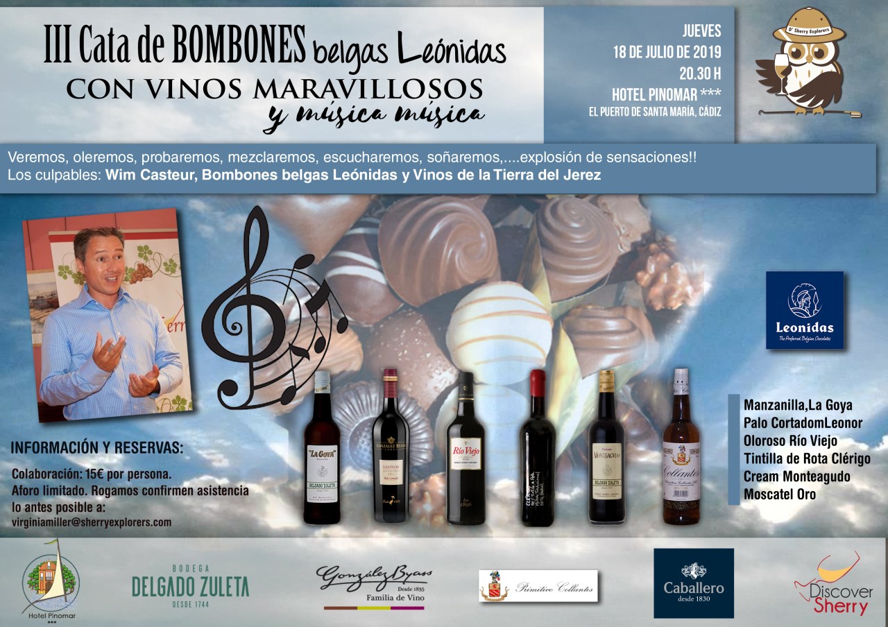 III Cata de Bombones Belgas y Vinos Maravillosos By Discover Sherry07/09/2019 Share this: Share on Facebook (Opens in new window) Facebook Share on Pinterest (Opens in new window) Pinterest Share on LinkedIn (Opens in new window) LinkedIn Share on X (Opens in new window) X Email a link to a friend (Opens in new window) Email Print (Opens in new window) Print Like Loading... Categories: About SherryTags: #sherrylovers, Cata bombones Belgas y vinos jerez, Discover Sherry, Hotel Pinomar, Merilyn Parker Armitage, Sherry Explorers, Wim Casteur Related Articles Sherry Explorers y Amigos: By Discover Sherry1 month ago Día de Acción de Gracias 2025 By Discover Sherry2 months ago Discover Sherry recommends: By Discover Sherry3 months ago Leave a comment Cancel reply