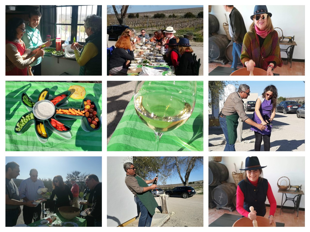 The Sherry Explorers, who had harvested grapes and crushed them with their bare feet this past summer, got together again at the La Zarzuela Vineyard in order to taste what had been converted into a young wine or “wine must.” It was exquisite! It was a beautiful day and we thoroughly enjoyed our reunion at the vineyard.