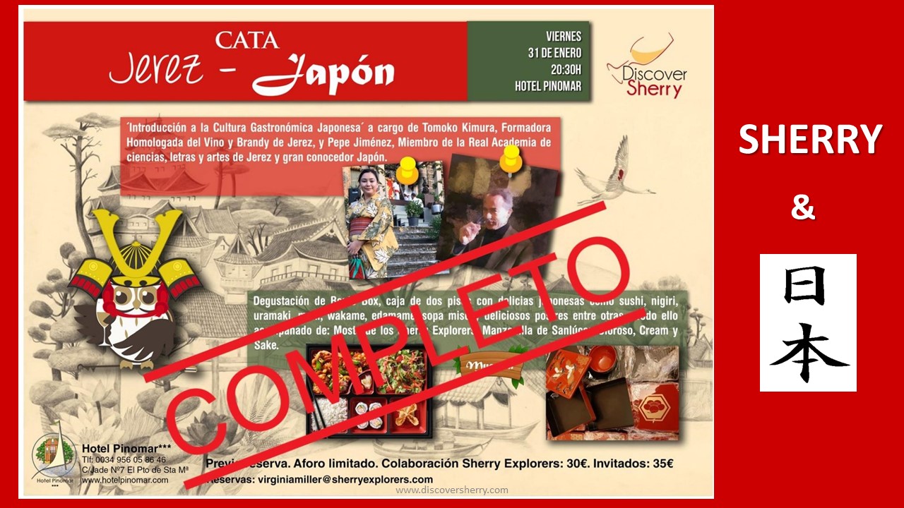 Nuestros profes fueron Tomoko Kimura de Tokio y José Luis Jiménez de Jerez. Aprendimos sobre el vino de jerez en Japón y sobre la comida japonesa y luego pudimos probar y experimentar bocados japoneses muy ricos con nuestro fantástico mosto, vinos de jerez y con sake.