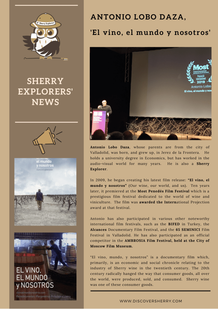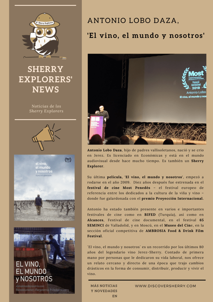 Sherry Explorers´ News: Antonio Lobo Daza By Discover Sherry - Sherry Explorers12/12/2020 Share this: Share on Facebook (Opens in new window) Facebook Share on Pinterest (Opens in new window) Pinterest Share on LinkedIn (Opens in new window) LinkedIn Share on X (Opens in new window) X Email a link to a friend (Opens in new window) Email Print (Opens in new window) Print Like Loading... Categories: About Sherry, Sherry ExplorersTags: Antonio Lobo Daza, ´El vino el mundo y nosotros´, Discover Sherry, Sherry Explorers´ News Related Articles FELIZ AÑO NUEVO . 2026 By Discover Sherry - Sherry Explorers12/30/2025 ( 3 ) Sherry Explorers y Amigos: By Discover Sherry - Sherry Explorers12/19/2025 Día de Acción de Gracias 2025 By Discover Sherry - Sherry Explorers11/26/2025 Leave a comment Cancel reply