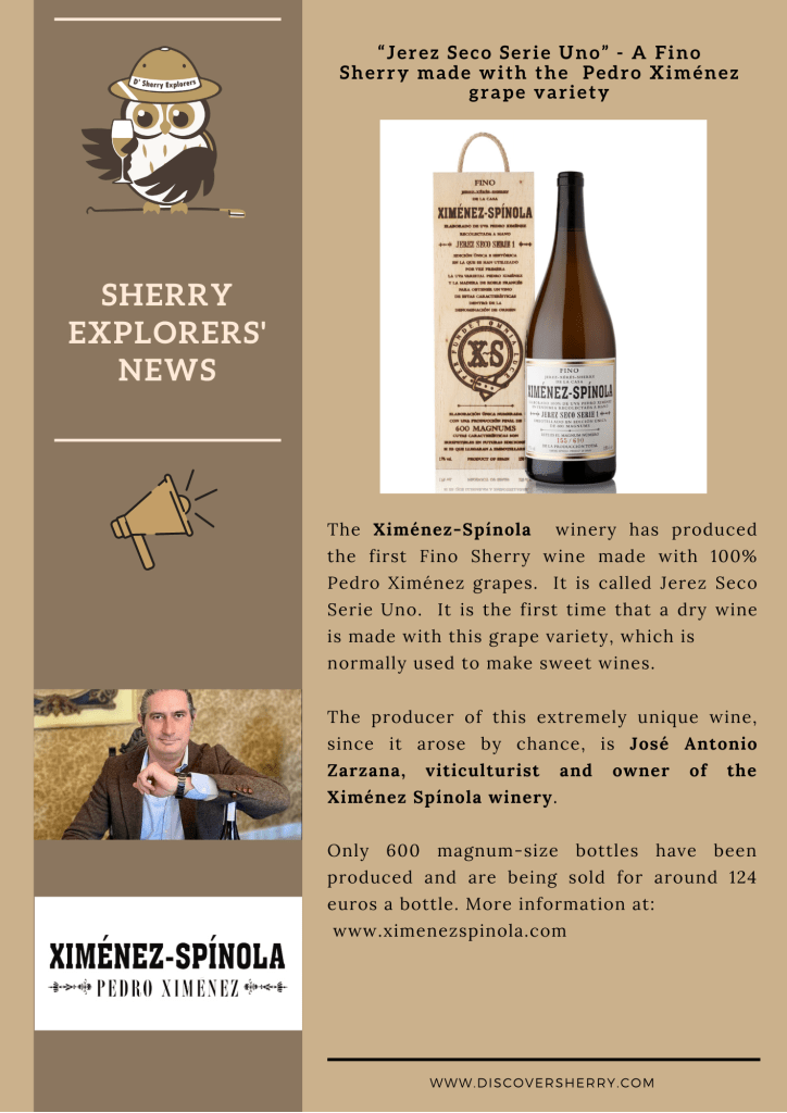 Sherry Explorers’ News: Seco Serie 1 By Discover Sherry02/24/2021 Share this: Click to share on Facebook (Opens in new window) Facebook Click to share on Pinterest (Opens in new window) Pinterest Click to share on LinkedIn (Opens in new window) LinkedIn Click to share on X (Opens in new window) X Click to email a link to a friend (Opens in new window) Email Click to print (Opens in new window) Print Like Loading... Categories: About Sherry, Bodegas & Vineyards / Bodegas y viñas, Sherry ExplorersTags: Bodega Ximénez Spínola, Discover Sherry, Jerez Seco Serie Uno, José Antonio Zarzana, Sherry Explorers´news Related Articles FELIZ AÑO NUEVO . 2026 By Discover Sherry2 weeks ago Sherry Explorers y Amigos: By Discover Sherry3 weeks ago Día de Acción de Gracias 2025 By Discover Sherry2 months ago Leave a comment Cancel reply