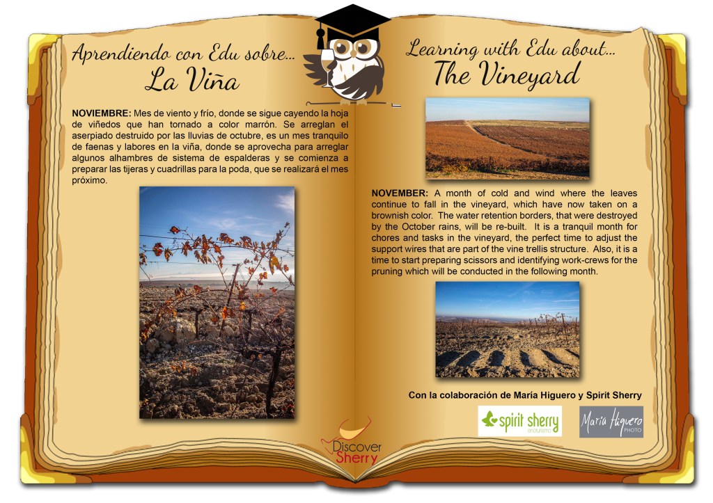 Sherry Explorers, repaso: La Viña en Noviembre By Discover Sherry11/03/2021 Share this: Click to share on Facebook (Opens in new window) Facebook Click to share on Pinterest (Opens in new window) Pinterest Click to share on LinkedIn (Opens in new window) LinkedIn Click to share on X (Opens in new window) X Click to email a link to a friend (Opens in new window) Email Click to print (Opens in new window) Print Like Loading... Categories: About Sherry, Beautiful Sherry Region / Maravillosa tierra del jerez, Bodegas & Vineyards / Bodegas y viñas, Sherry ExplorersTags: #sherrylover, Aprendiendo con Edu sobre ...la viña., Discover Sherry, La viña en noviembre, Learning with Edu about the vineyard, Sherry Explorers Related Articles FELIZ AÑO NUEVO . 2026 By Discover Sherry2 weeks ago Sherry Explorers y Amigos: By Discover Sherry3 weeks ago Día de Acción de Gracias 2025 By Discover Sherry2 months ago Leave a comment Cancel reply
