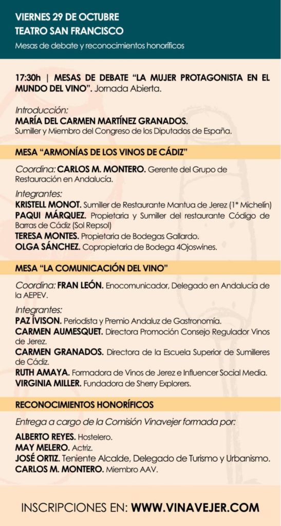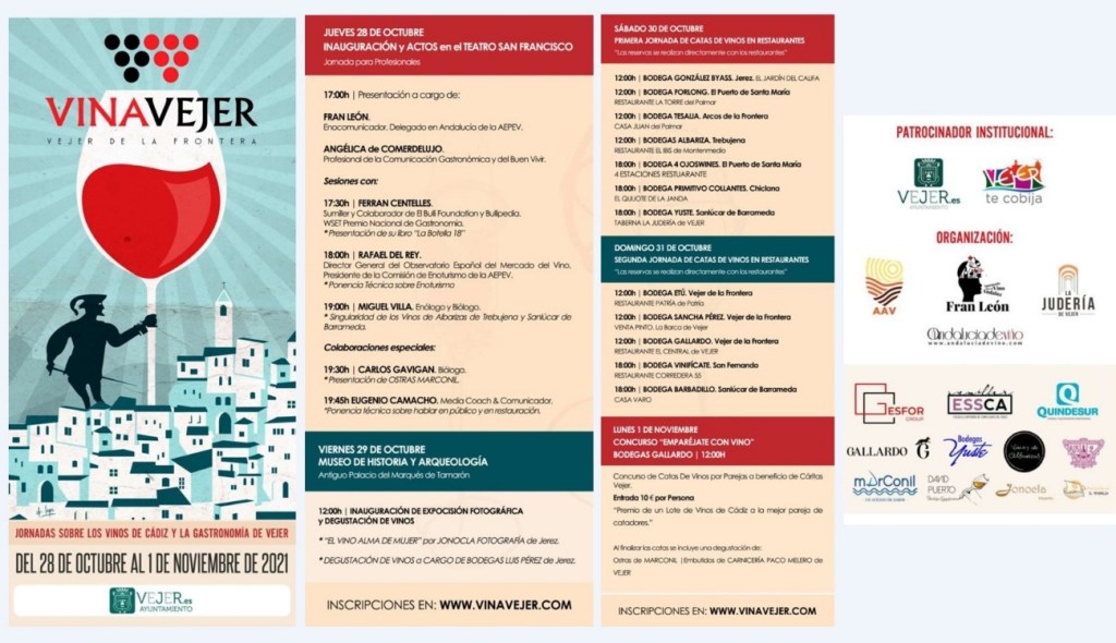 Como fundadora de los Sherry Explorers, me invitaron a participar en una mesa redonda en la ciudad de Vejer de la Frontera. Organizado por la Asociación Andaluza del Vino, se inauguró el jueves 28 de octubre un evento magnífico: VINAVEJER 2021.