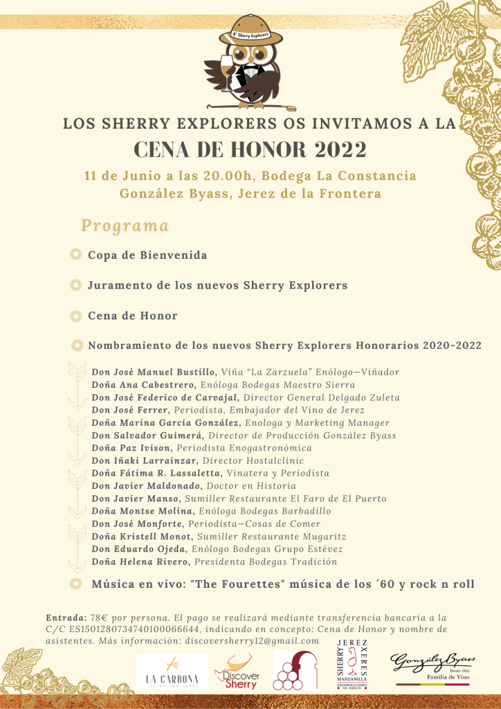 ¡Os esperamos en la Cena de Honor de los Sherry Explorers 2022! By Discover Sherry05/13/2022 Share this: Click to share on Facebook (Opens in new window) Facebook Click to share on Pinterest (Opens in new window) Pinterest Click to share on LinkedIn (Opens in new window) LinkedIn Click to share on X (Opens in new window) X Click to email a link to a friend (Opens in new window) Email Click to print (Opens in new window) Print Like Loading... Categories: About Sherry, Amazing Sherry People / Personas increíbles del jerez, Aventuras enogastronómicas / Enogastronomical adventures, Brandy de Jerez, Events / Eventos, Recommendations, Sherry ExplorersTags: #sherrylover, Bodegas González Byass, Consejo Regulador del Brandy, Discover Sherry, Restaurante La Carboná, Sherry Explorers Related Articles Sherry Explorers y Amigos: By Discover Sherry2 days ago Día de Acción de Gracias 2025 By Discover Sherry4 weeks ago Discover Sherry recommends: By Discover Sherry1 month ago Leave a comment Cancel reply