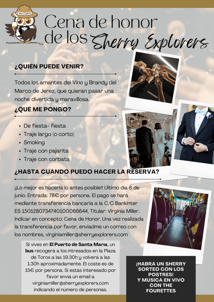 Más detalles sobre la Cena de Honor de los Sherry Explorers, 11 de junio 2022. By Discover Sherry06/03/2022 ¡Hacer reservas antes del martes, 7 de junio! Share this: Click to share on Facebook (Opens in new window) Facebook Click to share on Pinterest (Opens in new window) Pinterest Click to share on LinkedIn (Opens in new window) LinkedIn Click to share on X (Opens in new window) X Click to email a link to a friend (Opens in new window) Email Click to print (Opens in new window) Print Like Loading... Categories: About Sherry, Brandy de Jerez, Events / Eventos, Recommendations, Sherry ExplorersTags: #sherrylover, Bodega González Byass, Cena de Honor 2022, Discover Sherry, Sherry Explorers, Sherry Exporers Honorarios Related Articles FELIZ AÑO NUEVO . 2026 By Discover Sherry3 days ago Sherry Explorers y Amigos: By Discover Sherry2 weeks ago Día de Acción de Gracias 2025 By Discover Sherry1 month ago Leave a comment Cancel reply