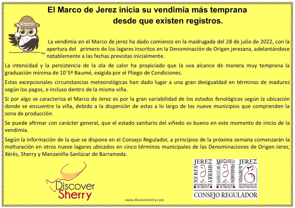 El Marco de Jerez inicia su vendimia más temprana desde que existen registros.