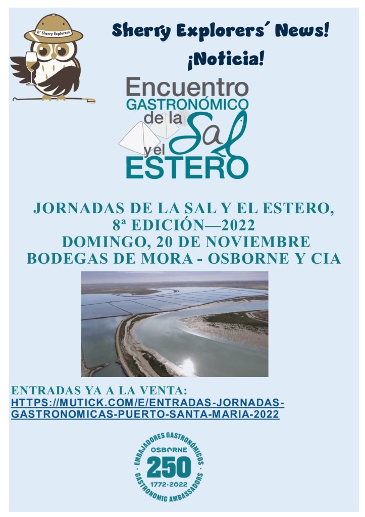Sherry Explorers´ News! ¡Noticia! By Discover Sherry08/11/2022 Share this: Click to share on Facebook (Opens in new window) Facebook Click to share on Pinterest (Opens in new window) Pinterest Click to share on LinkedIn (Opens in new window) LinkedIn Click to share on X (Opens in new window) X Click to email a link to a friend (Opens in new window) Email Click to print (Opens in new window) Print Like Loading... Categories: About Sherry, Aventuras enogastronómicas / Enogastronomical adventures, Beautiful Sherry Region / Maravillosa tierra del jerez, Events / Eventos, Sherry ExplorersTags: #sherrylover, Bodegas Osborne, Discover Sherry, Jornadas de la Sal y el Estero, Sherry Explorers Related Articles Sherry Explorers y Amigos: By Discover Sherry2 days ago Día de Acción de Gracias 2025 By Discover Sherry4 weeks ago Discover Sherry recommends: By Discover Sherry1 month ago Leave a comment Cancel reply