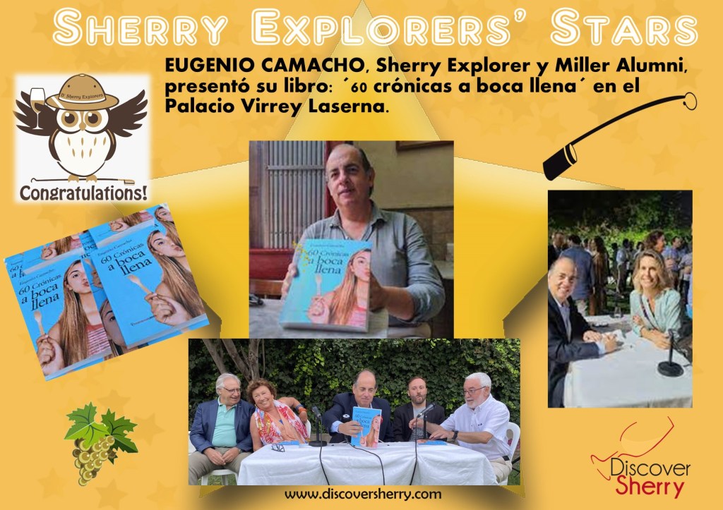 Esa labor se traslada ahora al papel, el de un libro, 60 crónocas a boca llena, editado por Peripecias Libros, y que se presentó en el Jardín del Palacio del Virrey Laserna, en la calle Pozuelo. Eugenio Camacho contó con la presentación de los periodistas Francisco Sánchez Múgica y Paz Ivison, Premio Nacional de Gastronomía y Sherry Explorer Honoraria. (Texto: vivajerez https://vivajerez.es/jerez/1074108/el-periodista-eugenio-camacho-convierte-en-libro-sus-cronicas-a-boca-llena/)