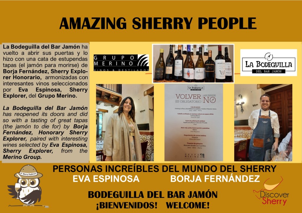 Amazing Sherry People: Bodeguilla del Bar Jamón By Discover Sherry04/11/2023 Share this: Click to share on Facebook (Opens in new window) Facebook Click to share on Pinterest (Opens in new window) Pinterest Click to share on LinkedIn (Opens in new window) LinkedIn Click to share on X (Opens in new window) X Click to email a link to a friend (Opens in new window) Email Click to print (Opens in new window) Print Like Loading... Categories: About Sherry, Amazing Sherry People / Personas increíbles del jerez, Aventuras enogastronómicas / Enogastronomical adventures, Events / Eventos, Sherry ExplorersTags: #sherrylover, Amazing Sherry People, Borja Fernández, Discover Sherry, Eva Espinosa Enóloga, Grupo Merino, La Bodeguilla del Bar Jamón, Sherry Explorers, Sherry wines Related Articles Sherry Explorers y Amigos: By Discover Sherry2 days ago Día de Acción de Gracias 2025 By Discover Sherry4 weeks ago Discover Sherry recommends: By Discover Sherry1 month ago Leave a comment Cancel reply