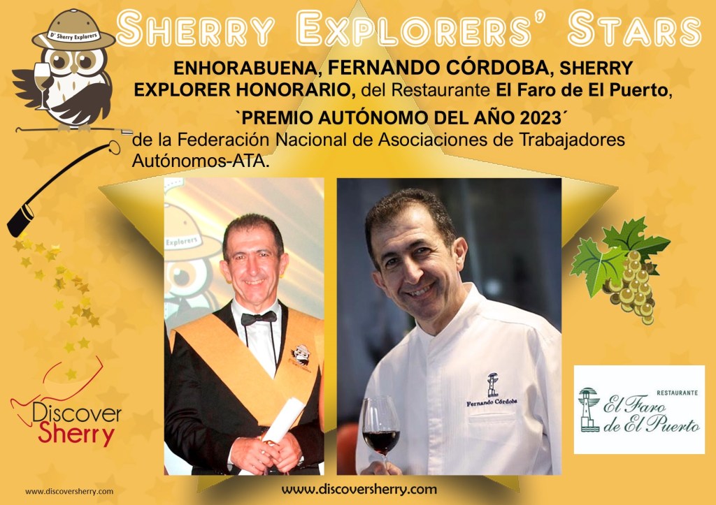 ¡Enhorabuena FERNANDO CÓRDOBA, Sherry Explorer Honorario! By Discover Sherry08/29/2023 Share this: Click to share on Facebook (Opens in new window) Facebook Click to share on Pinterest (Opens in new window) Pinterest Click to share on LinkedIn (Opens in new window) LinkedIn Click to share on X (Opens in new window) X Click to email a link to a friend (Opens in new window) Email Click to print (Opens in new window) Print Like Loading... Categories: About Sherry, Amazing Sherry People / Personas increíbles del jerez, Aventuras enogastronómicas / Enogastronomical adventures, Sherry ExplorersTags: #sherrylover, Discover Sherry, El Puerto de Santa María, Restaurante El Faro de El Puerto, Sherry Explorer Honorario Fernando Córdoba, Sherry Explorers, Sherry wines Related Articles Sherry Explorers y Amigos: By Discover Sherry2 days ago Día de Acción de Gracias 2025 By Discover Sherry4 weeks ago Discover Sherry recommends: By Discover Sherry1 month ago Leave a comment Cancel reply